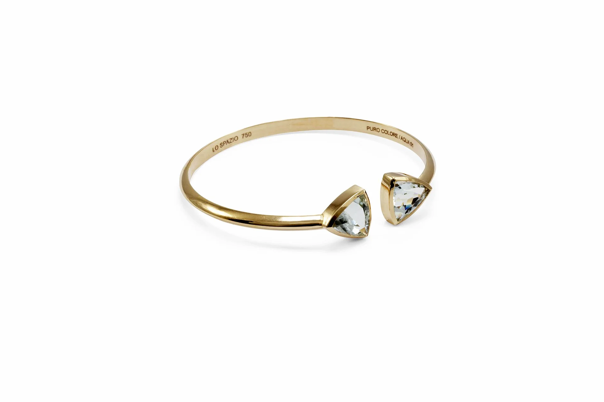 AQUAMARINE BANGLE 18k white gold with bezel set trillion-cut Aquamarine gemstonesTotal gemstones: approximately 7.0 ct. t.w. PRICING AND ORDER