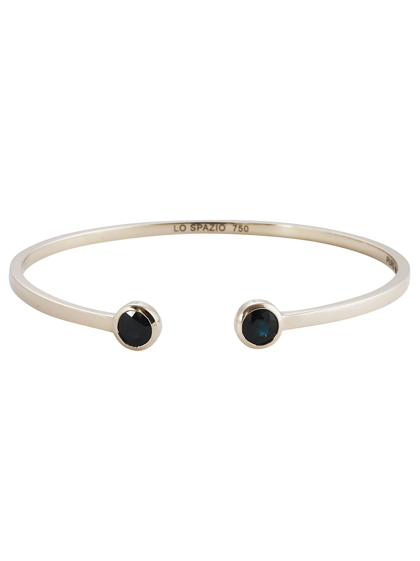 Timeless elegance solid 18k white gold with 2 round faceted 6.5 mm dark blue Sapphire in bezel set