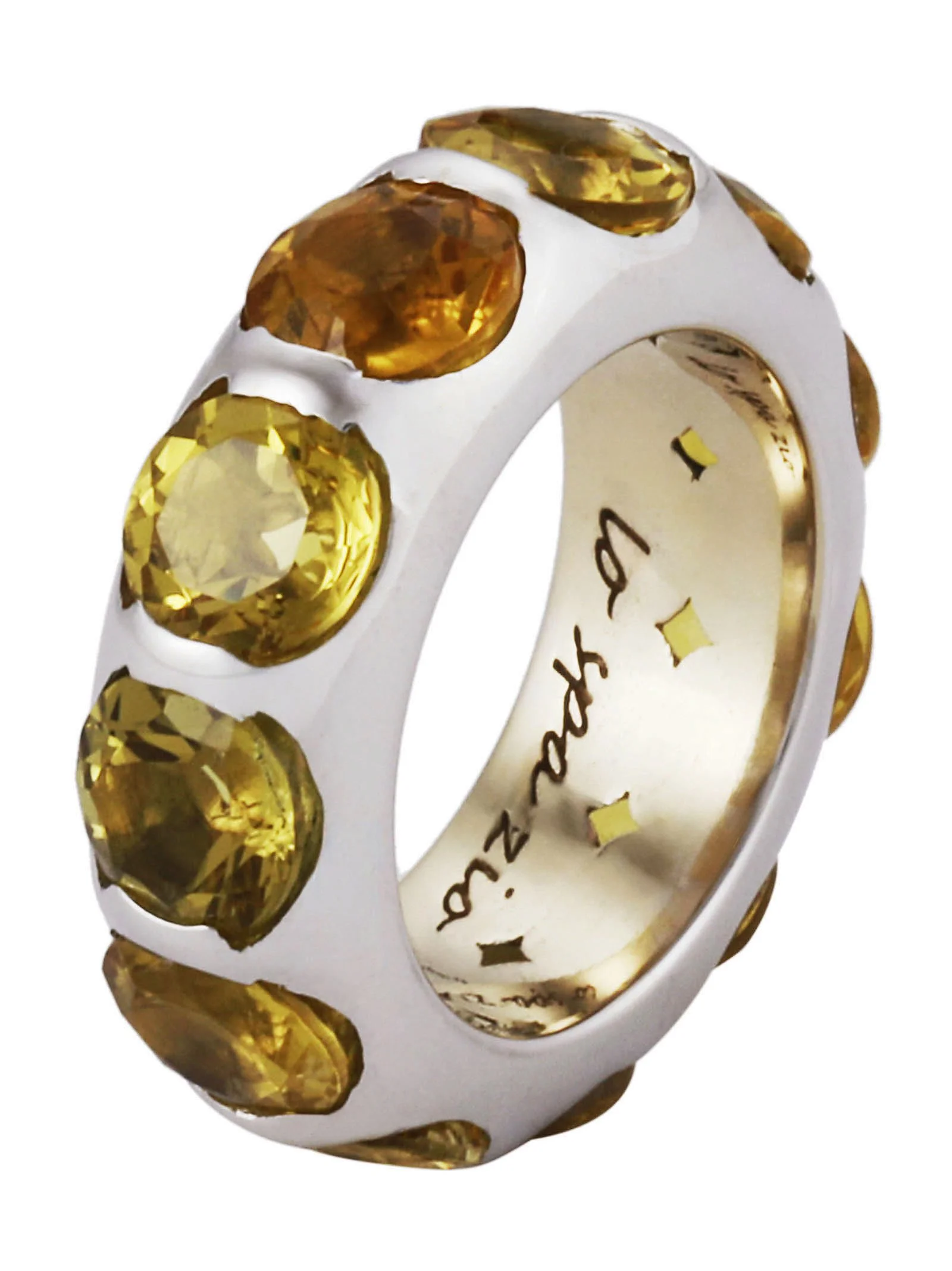 18k white gold ring with eleven round faceted round mixed shades Yellow Beryl gemstone